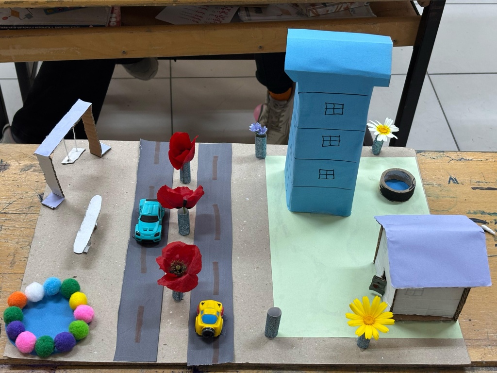 Science (Fen): Projede doğaya saygılı, yaşanabilir bir şehir oluşturulması hedeflendi. Öğrenciler şehir içindeki çevre düzenlemelerinde (yeşil alanlar, parklar, göletler) sürdürülebilirliğe dikkat ederek çevre bilinci kazandı.